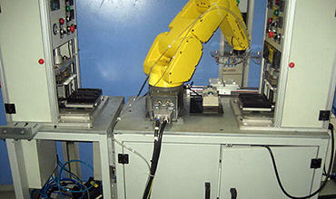 Fanuc六軸機器人配合熱熔機實現無人化作業,包含兩制程的熱熔,一個單元全自動完成,穩定節省人力。操作簡單:適合一線作業人群。...